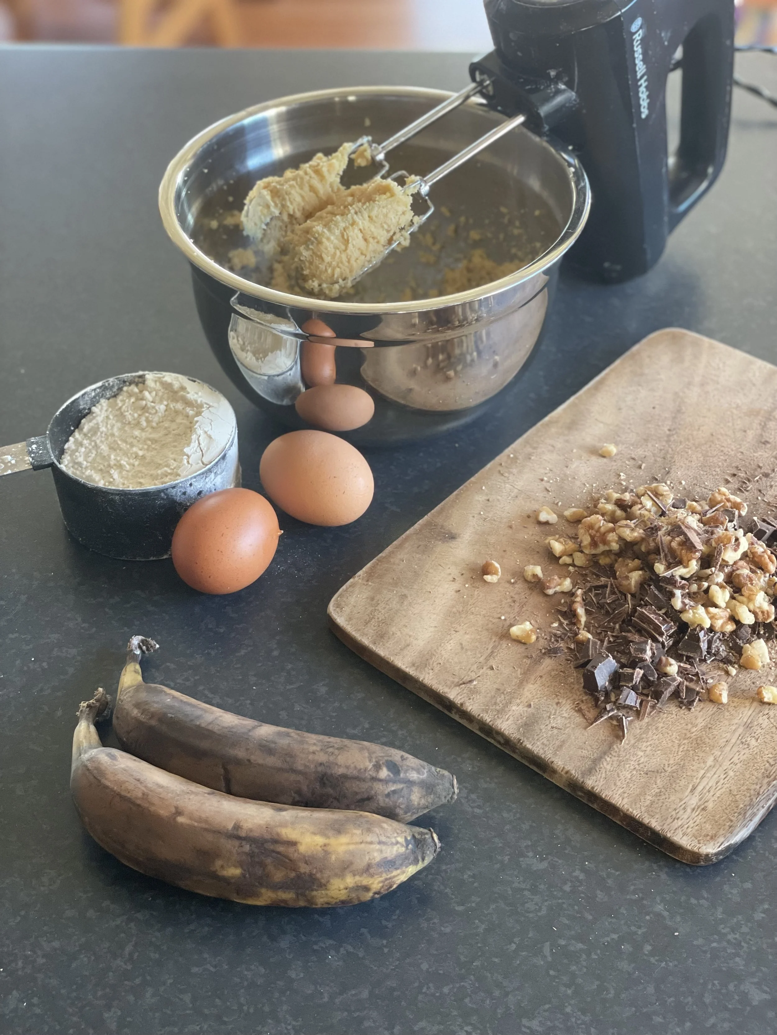 Banana bread with chocolate and walnuts